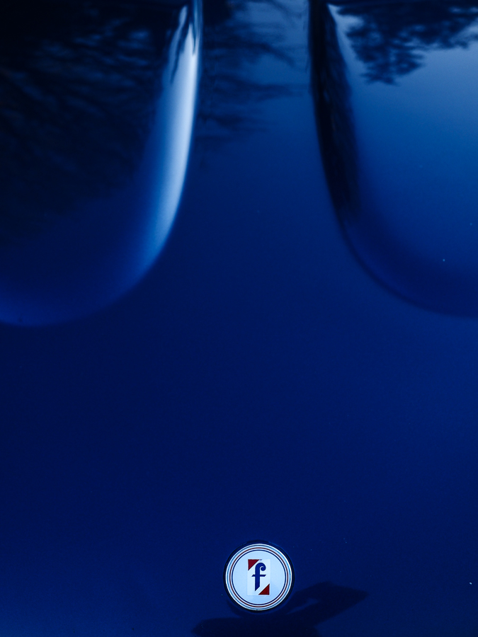 Levier de commande de boite de vitesse long et sans console centrale. Capot avant plat et calandre à barres horizontales. Petit feus arrières