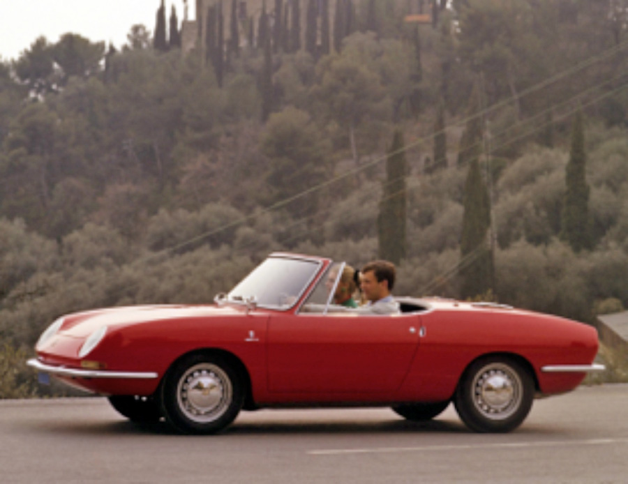 Après avoir réussi à imposer son style pour la version spider avec une ligne filante qui n’avait strictement plus rien de commun avec la berline ou le futur Coupé de la nouvelle Fiat 850 que la direction du constructeur italien voulait réaliser en interne, pour respecter le cahier des charges très strict imposé par Fiat et limiter les coûts, Nuccio Bertone utilisa toute la base mécanique de la Fiat 850 berline sauf le moteur dont la puissance fut portée à 49 ch à 6 200 tr/min ce qui lui permettait d’atteindre une vitesse de 145 km/h. Par rapport à la berline, elle disposait de puissants freins à disque à l’avant.